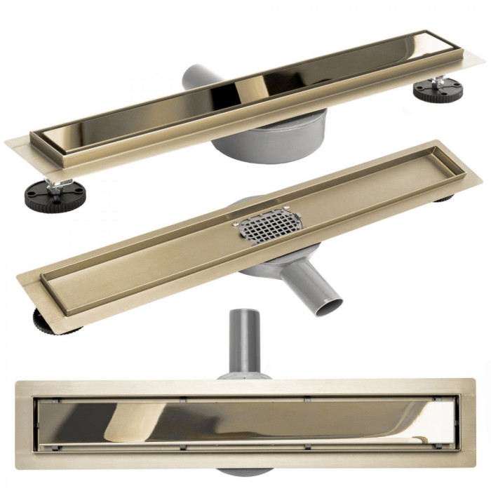 Модель слива Rea Pure Neo Pro Mirror Gold - один из наших лучших линейных сливов, сделанный из высококачественной нержавеющей стали Aisi 304. Сифон в сливе Pure Neo Pro вращается (диапазон 360 градусов), поэтому мы можем установить его на слив трубы в нестандартном месте. Крышка водостока Pure Neo Pro двусторонняя, поэтому мы можем выбрать два варианта отделки - зеркально-золотистую поверхность или вклеенную плитку, что позволяет подобрать тип отделки для каждой ванной комнаты.